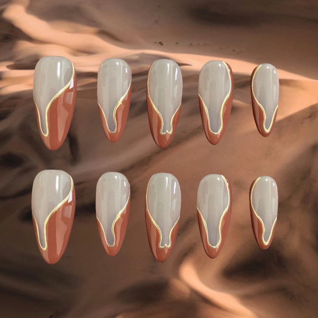 Inspired by the soft glow of sunrise, 7:00 A.M. Golden Flow features delicate gold accents flowing like liquid gold over a sleek, neutral base. This design balances modern sophistication with artistic fluidity, making it the perfect choice for those who love a bold yet refined aesthetic. Elevate your style effortlessly with this timeless and elegant look. 🌅💫